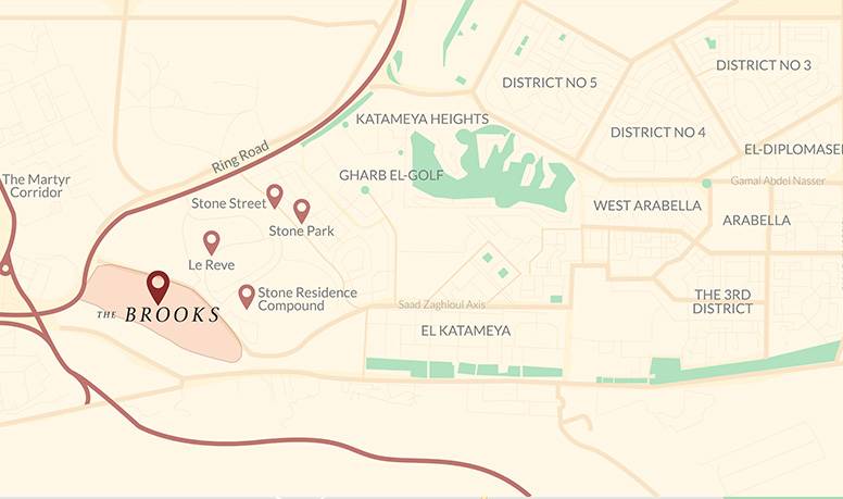 ذا بروكس في قلب القاهرة الجديدة على بُعد دقائق من المعادي ومدينة نصر و15 دقيقة فقط من مطار القاهرة الدولي